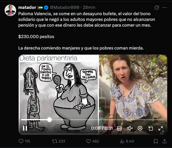 El comentario cuestionado señalaba: “Como diría Jaime Garzón, Paloma Valencia no se ‘dirige’ al país. Se ‘digiere’ al país”, en referencia a la senadora y próxima candidata a la Gran Consulta por Colombia.