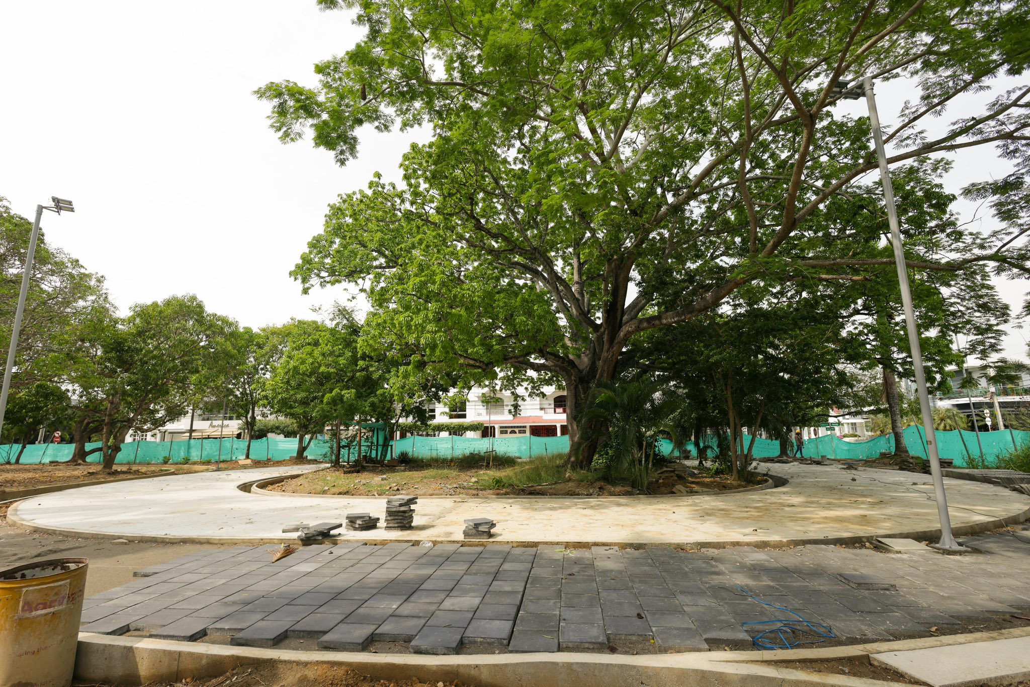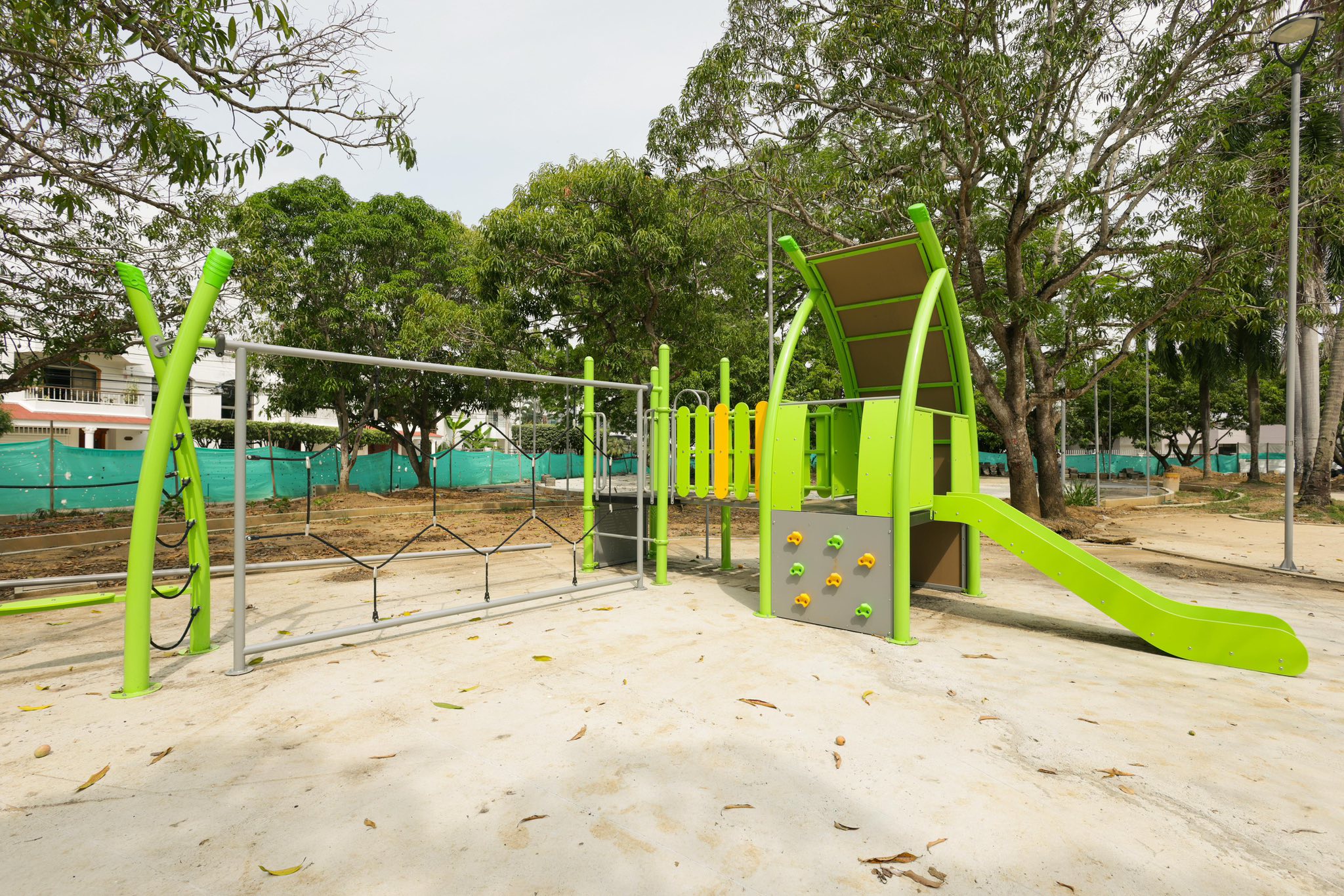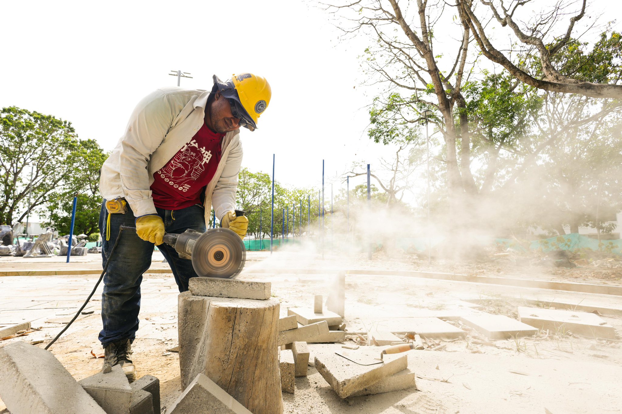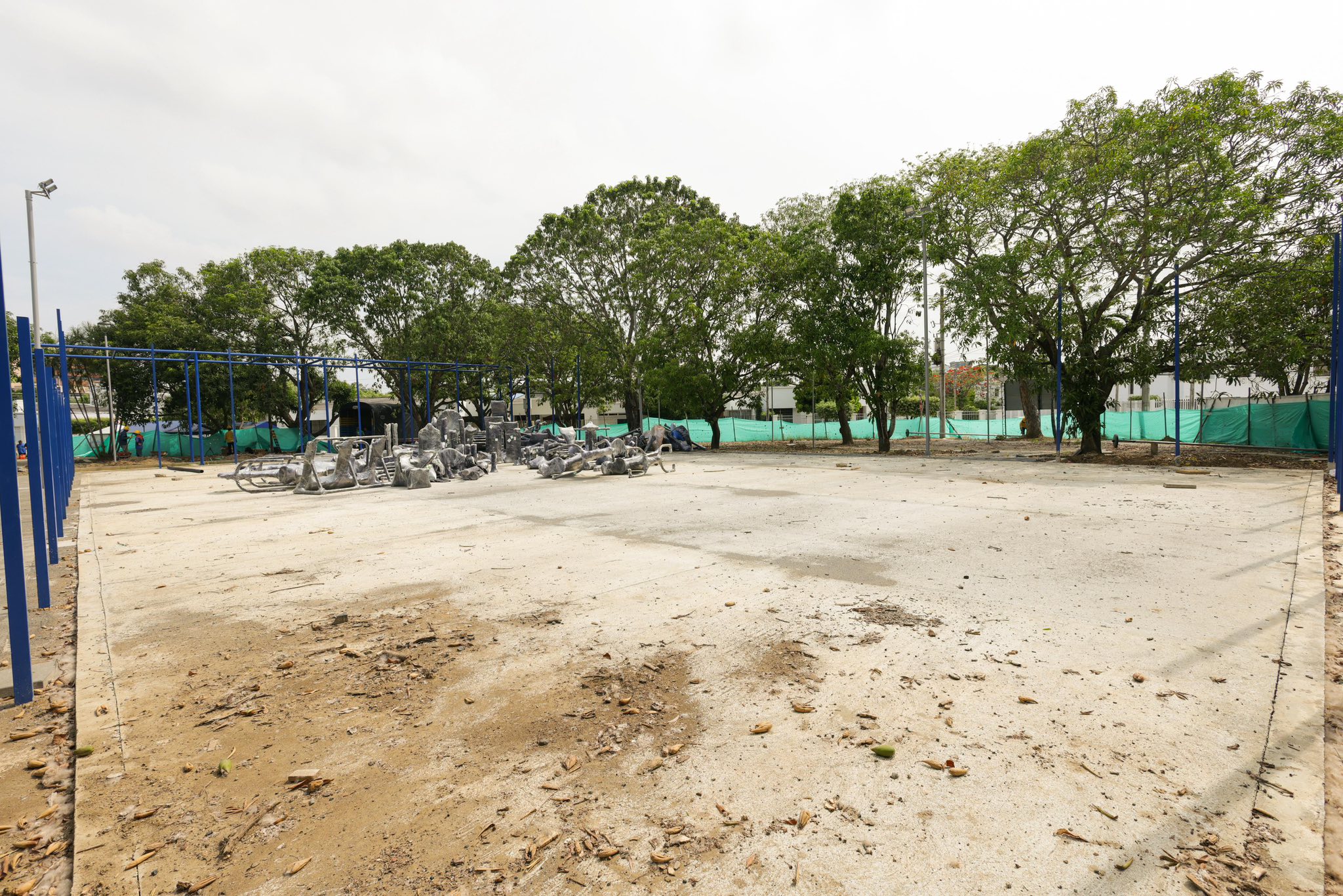 El proyecto abarca 8.500 metros cuadrados donde se construyen canchas de baloncesto, jaula de bateo, zonas de calistenia, juegos infantiles, parques biosaludables y locales comerciales.