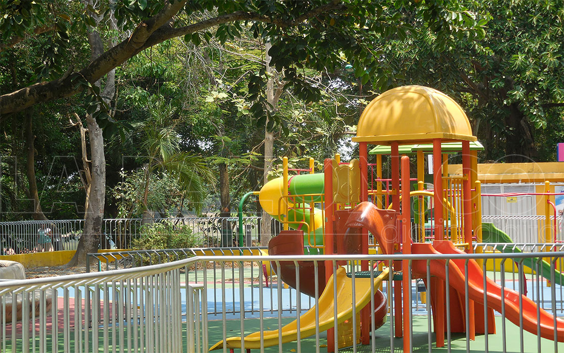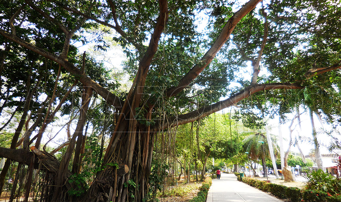 En este parque el color que prevalece es el verde, con árboles que deleitan la vista como los exóticos tulipanes africanos y polvillos; aquellos frutales que activan las papilas gustativas como mangos, guayabas, peras, higos y cocos. Otros árboles que le sacan una sonrisa a los visitantes por la curiosidad de sus nombres, ya sea orejeros, cañafístula, guama de mico y camajón; también siguen aquellos colosales testigos de la historia del parque, los árboles más antiguos son campanos, bongas, robles y caobas.