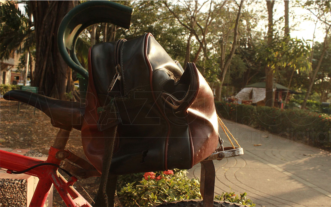 Para despedirme de este coloquial personaje, lo invité a tomar algo y me dijo “tranquila que me acabo de tomar una chicha”. Cerró su local con la carpa verde que lo cubre, amarró su bolso de cuero café a la parrilla de su bicicleta, se puso su sombrero y emprendió la cicloruta que lo llevaría a casa.