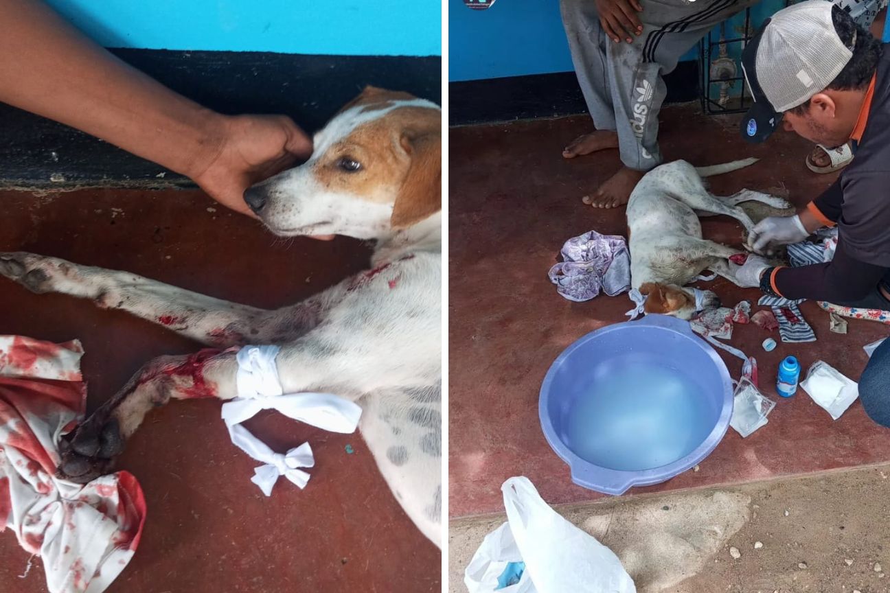 El animal se encontraba encerrado mientras su propietaria asistía a misa el pasado domingo 4 de enero. Sin embargo, buscó salir para seguirla. Al regresar, la mujer encontró a su mascota con hemorragia severa y la extremidad casi amputada de forma circular, colgando únicamente por tejido.