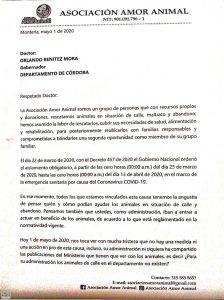 #Noticias| Un grupo de personas pertenecientes a la Asociación Amor Animal le enviaron una carta dirigida a la gobernación de Córdoba, solicitando ayudas para atender a los animales en situación de calle, que también se han visto afectados por la pandemia del coronavirus debido al confinamiento en el que se encuentra el país, y que a la fecha no han recibido ningún tipo de beneficio por parte de las autoridades según la asociación animalista.