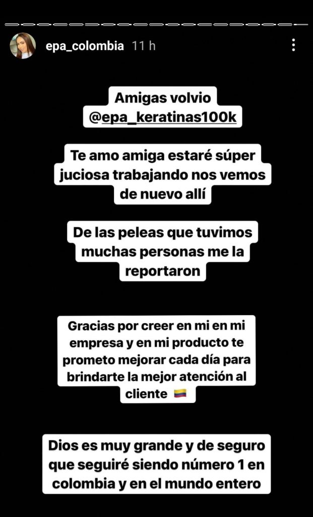 Hasta el momento la influencer no se ha pronunciado directamente sobre el hecho, solo se conoce que le inhabilitaron la cuenta de la página de sus keratinas, pero nuevamente la recuperó y bajó la fotografía que tanto rechazo ha generado.