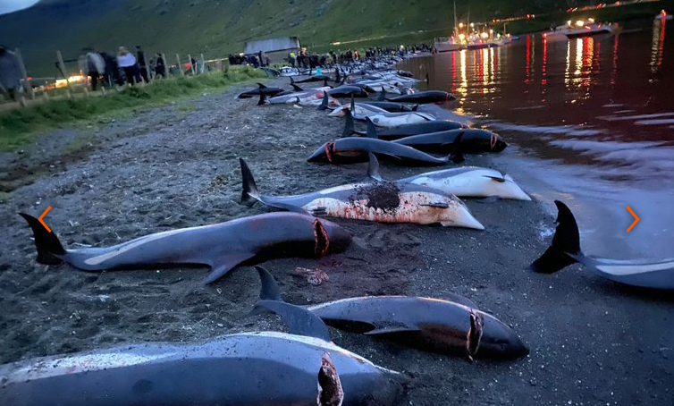 El asesinato de estos animales se debe a la cacería por parte de pescadores, quienes persiguen a los delfines durante horas hasta que los rodean con barcos y en tierra son masacrados con cuchillos. La práctica corresponde a una cacería organizada y regulada que hace parte de una tradición ancestral que data de 1200 años y es conocida como ‘grindadráp’.
