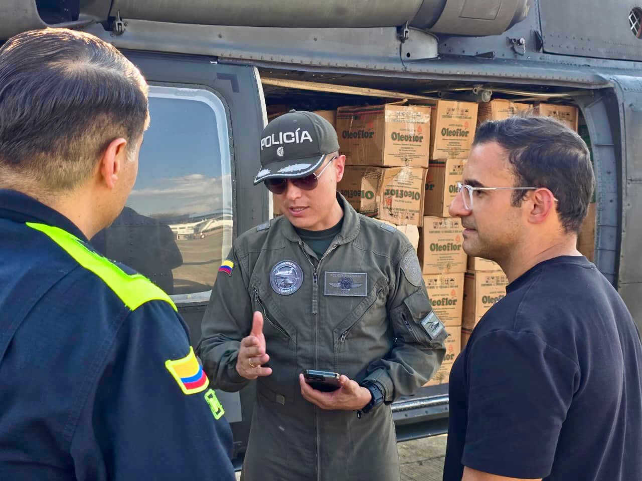 La creciente del río y el deterioro de las vías dejaron sin acceso terrestre a esta comunidad, lo que obligó a la administración municipal a activar una ruta aérea con apoyo de la Fuerza Pública. A bordo de la aeronave se transportaron alimentos no perecederos, agua potable, kits de aseo y otros insumos básicos dirigidos a las familias damnificadas.