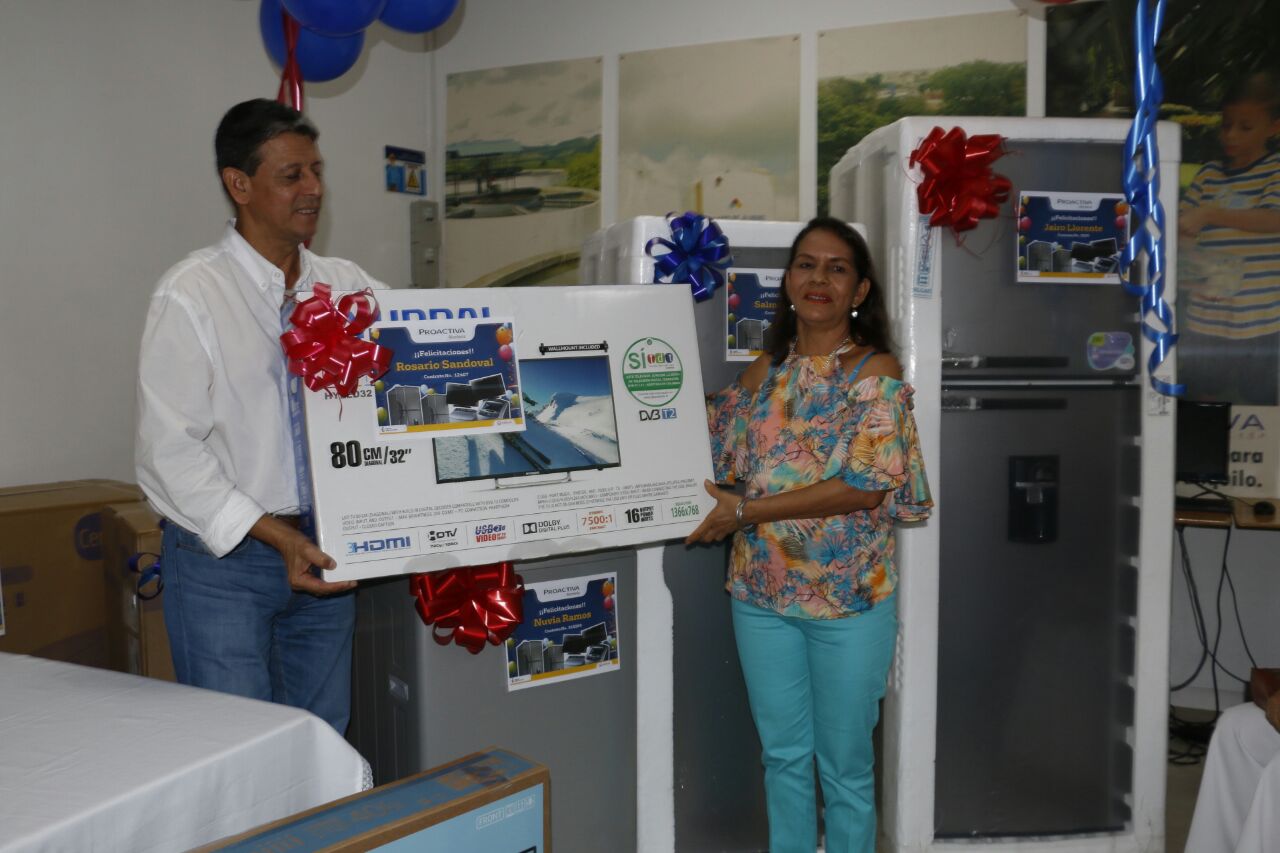 Montería. En la tarde de este viernes, la empresa Proactiva Aguas de Montería, entregó 10 electrodomésticos que el pasado miércoles 23 de noviembre, sorteó entres los 4.190 usuarios que esta año pagaron puntualmente sus facturas.