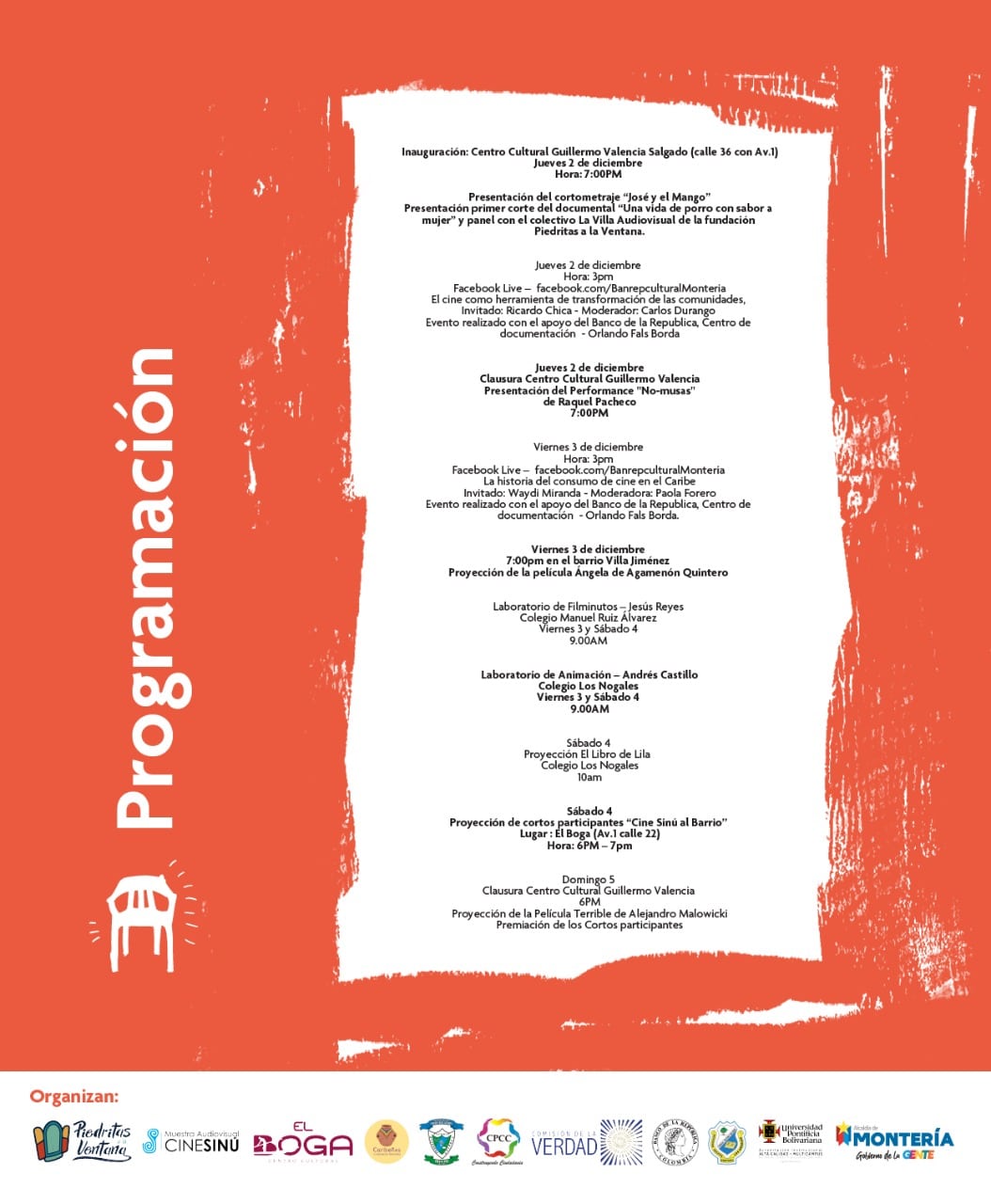 #Recomendado| Desde este jueves 2 de diciembre y hasta el próximo domingo 5, en la capital de Córdoba se respirará séptimo arte, gracias a la realización del I Festival de Cine Comunitario de Montería: todos podemos contar una historia, una alianza entre Cine Sinú y la Fundación Piedritas a la Ventana.