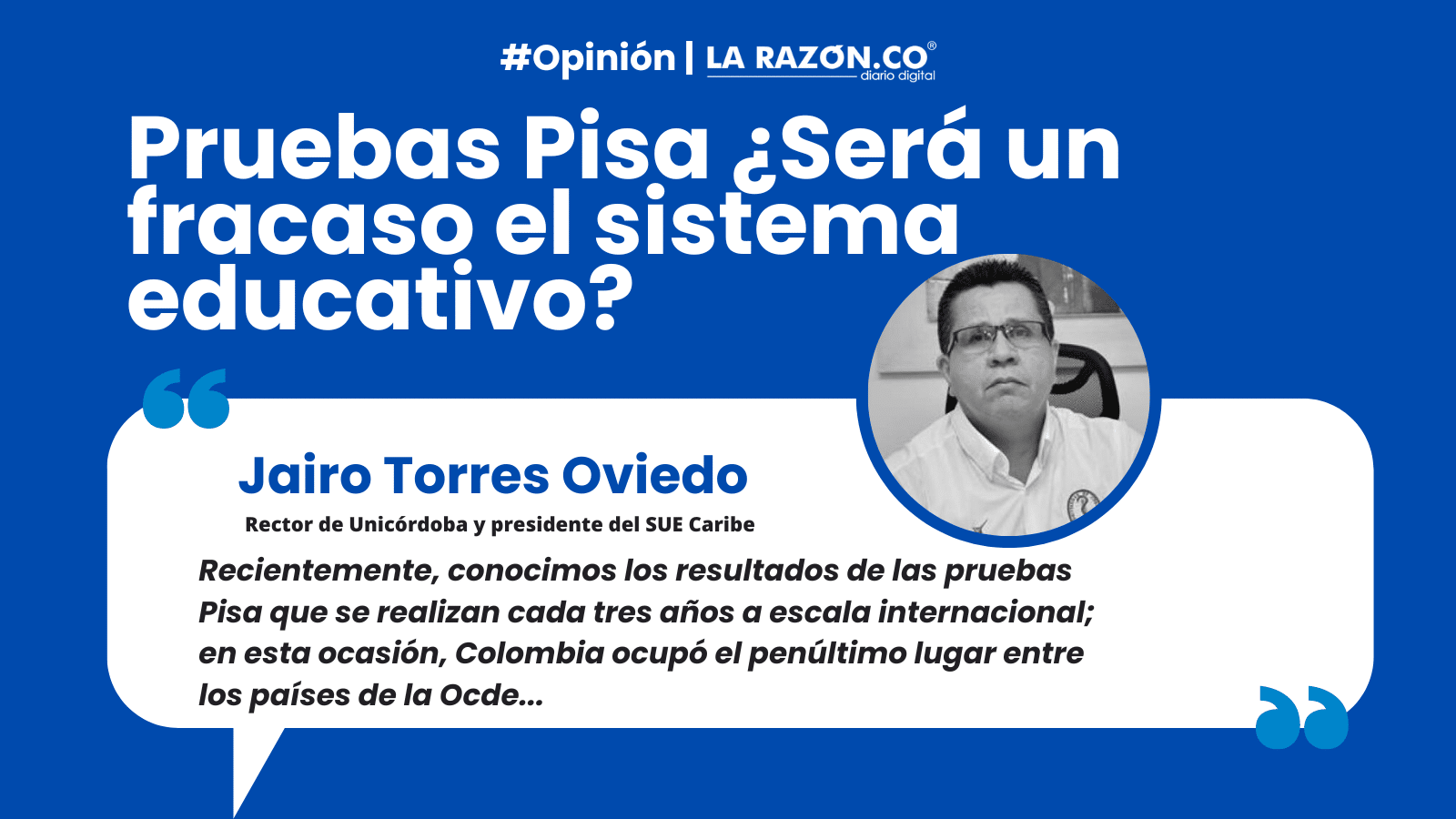 Opinión. Recientemente, conocimos los resultados de las pruebas Pisa que se realizan cada tres años a escala internacional; en esta ocasión, Colombia ocupó el penúltimo lugar entre los países de la Ocde, en las siguientes áreas del conocimiento: matemáticas, ciencias, comprensión lectora, ortografía, morfosintaxis y morfología; en donde ocupamos el lugar ya mencionado; lo que indica que, somos un país que poco lee.