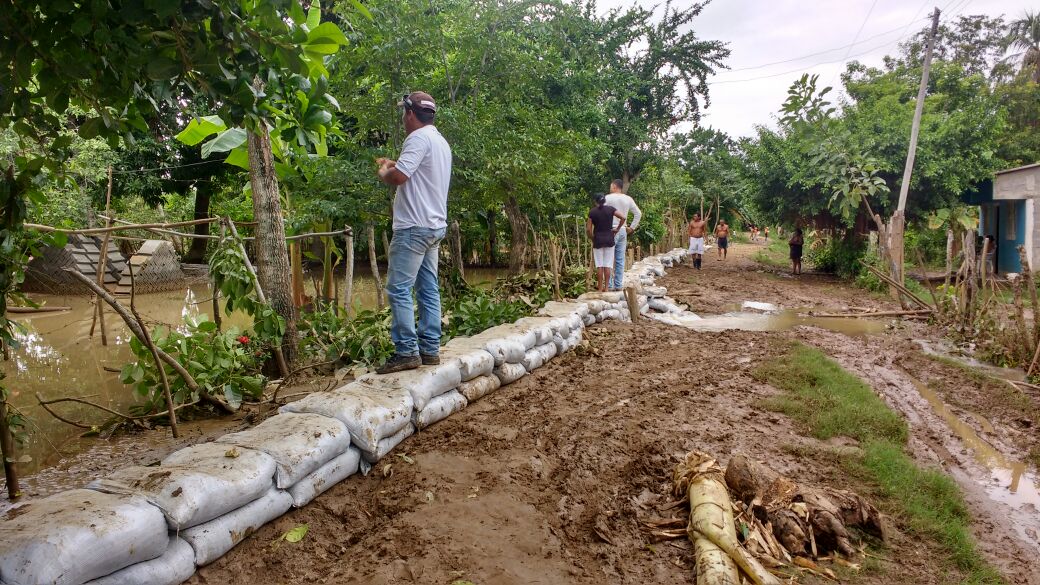 El apoyo de la comunidad y de la Corporación Ambiental CVS al igual que la Defensa Civil fue determinante para controlar el punto crítico en Rabo Gancho, donde sus pobladores están con el credo en la boca y con el río a escasos dos metros de sus viviendas.