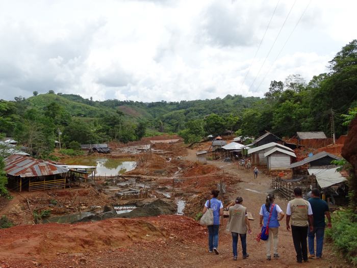 En las últimas horas más de 200 integrantes del Esmad y escuadrones jungla de la Policía se tomaron la mina y desmantelaron 16 entables mineros, obligando al desplazamiento de cientos de pobladores de esta zona.
