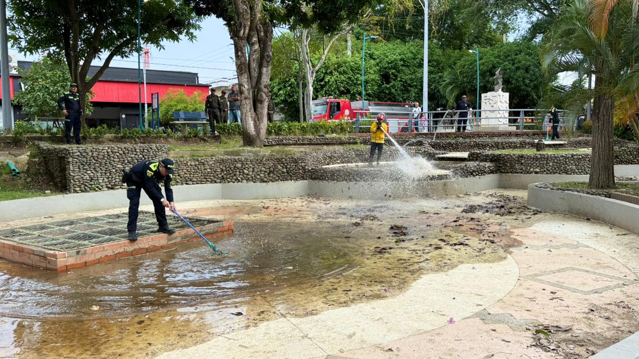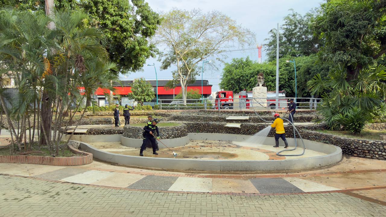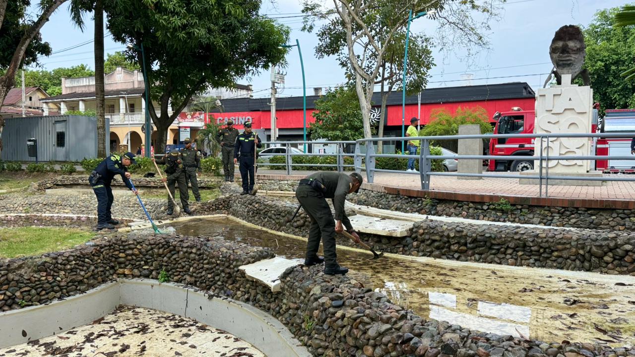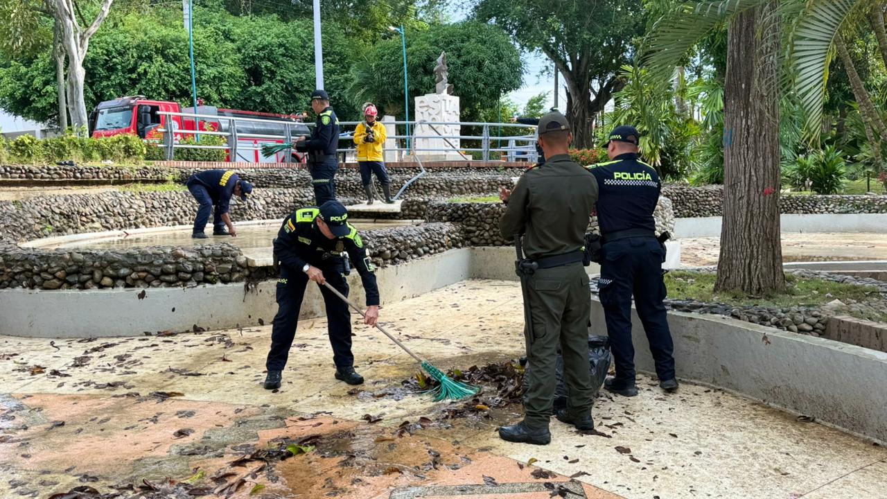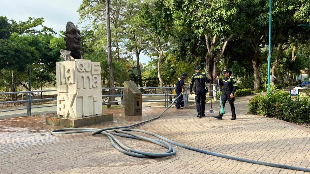La Policía Metropolitana de Montería, a través del Grupo de Protección al Turismo y Patrimonio Nacional en coordinación con el Cuerpo de Bomberos y la empresa Urbaser, realizó jornada de ornato y embellecimiento en el Parque Lineal Ronda del Sinú, sector Centro.