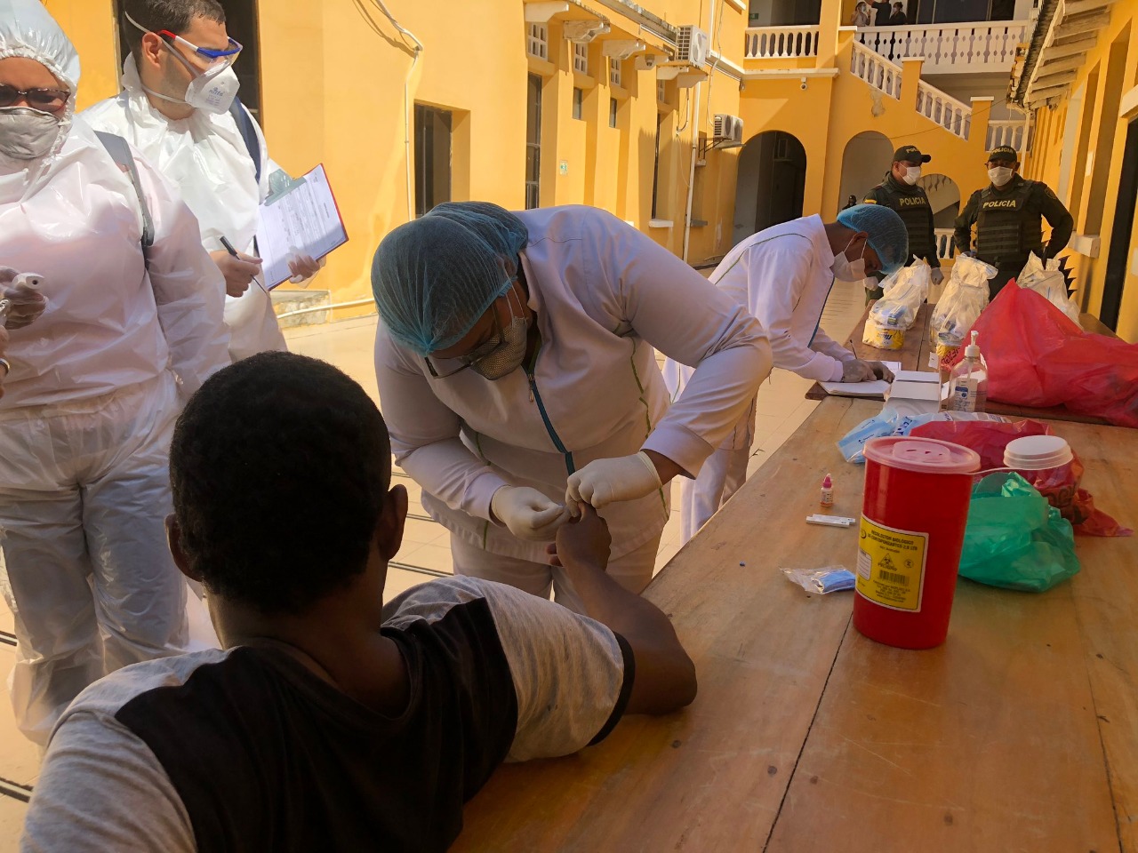 Las autoridades sanitarias le hicieron caracterización y toma de temperatura a los detenidos para garantizar las condiciones de bioseguridad en esta población.