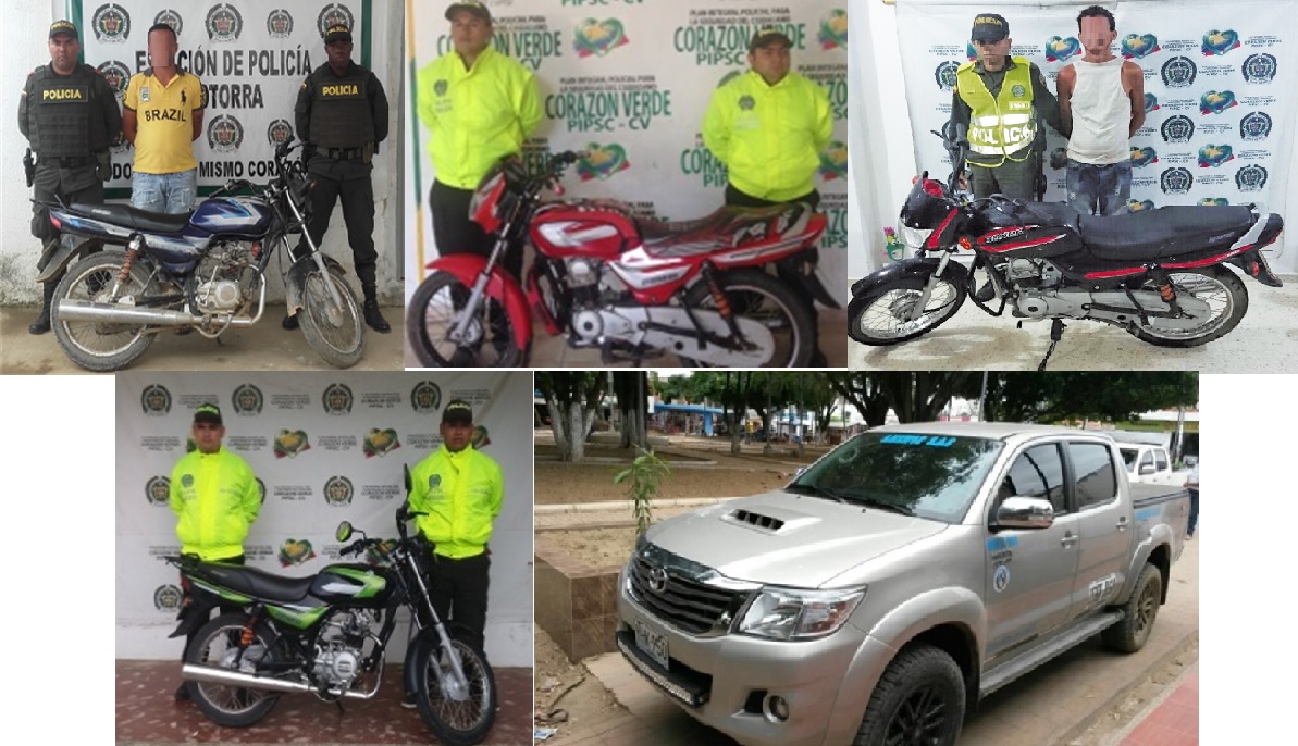 Los operativos se desarrollaron en los municipios de Cotorra, Montelíbano, Valencia, Lorica y Sahagún, logrando la recuperación de cuatro motocicletas de diferentes marcas en su mayoría Bóxer CT100 y de distintos cilindrajes.