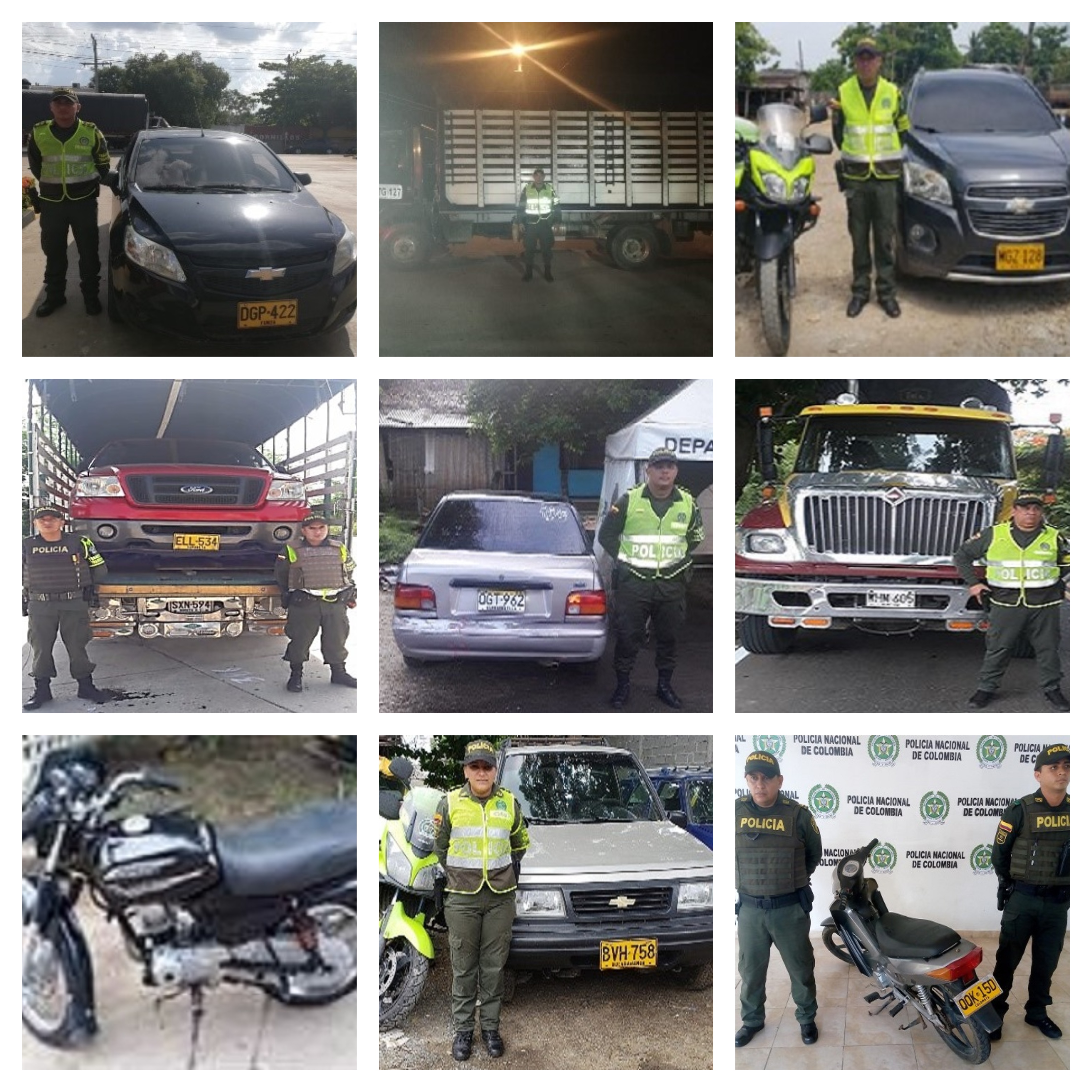 Al verificar los antecedentes en el sistema de la Policía Nacional, se logró determinar que los vehículos se encontraban reportados como hurtados en el departamento de Bolívar, Sucre y Norte de Santander en los años 2010 y 2018.