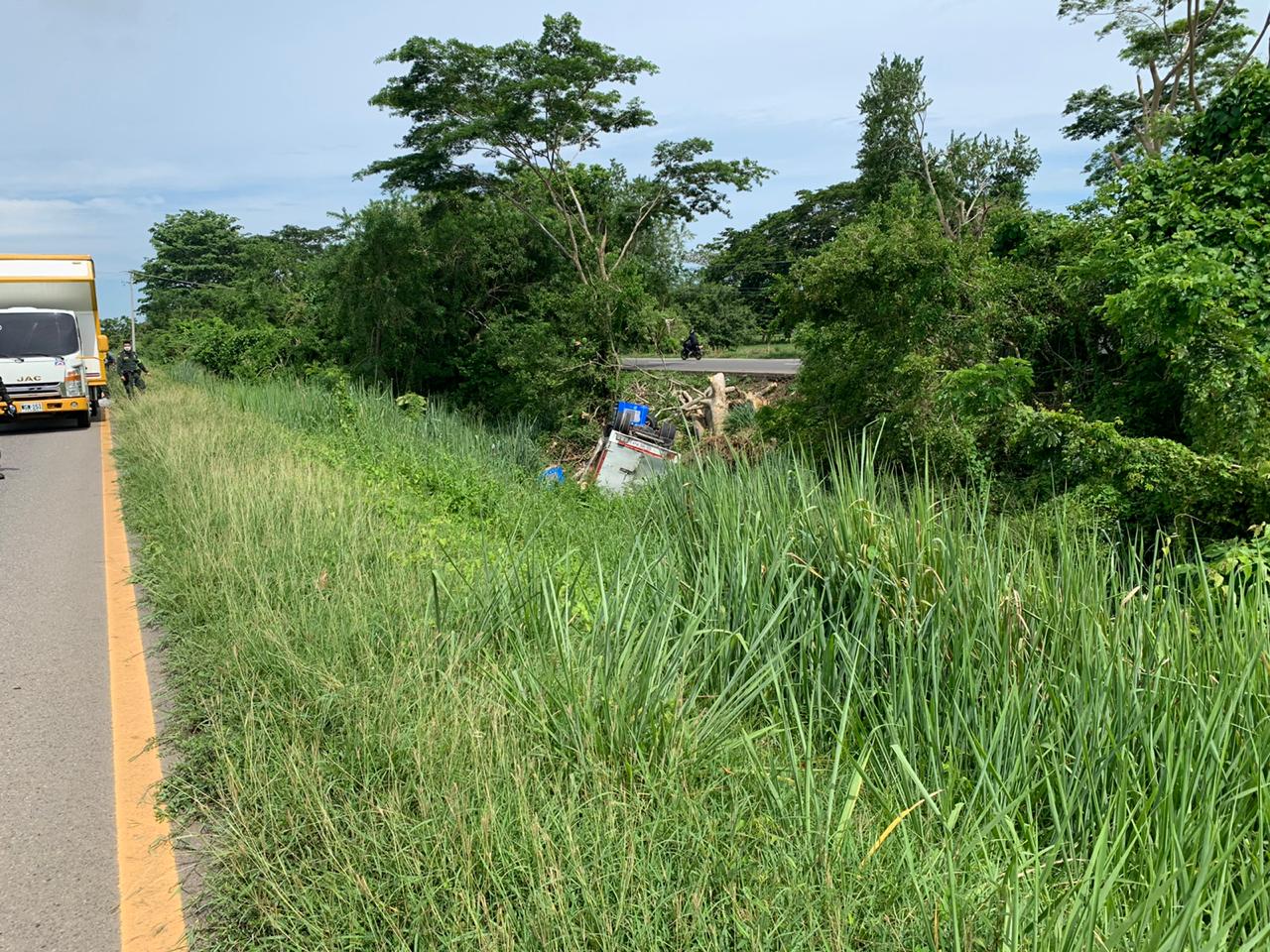 El otro siniestro involucra a un furgón que trasladaba aires acondicionados, el cual se volteó en la vía que comunica a Ciénaga de Oro con Cereté.