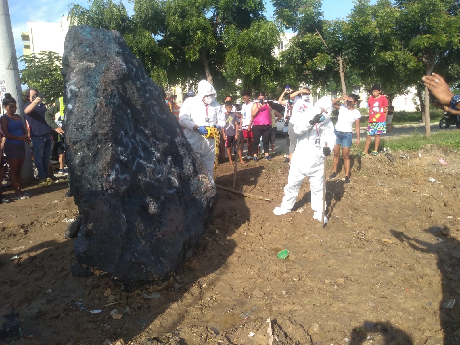 Las autoridades y expertos en el tema se movilizaron hasta la zona donde se produjo el hallazgo, algunos se han atrevido a afirmar que se trata de un meteorito, hecho que aún no ha sido confirmado. Los habitantes del sector han indicado que la piedra en días anteriores no estaba en el lugar y que es imposible que alguien la haya puesto ahí sin que se dieran cuenta.