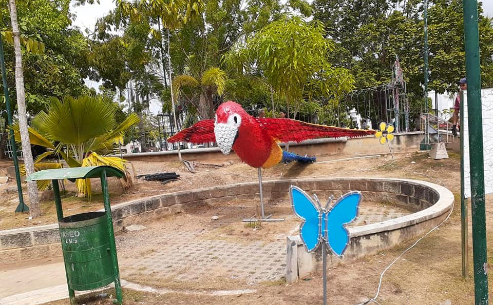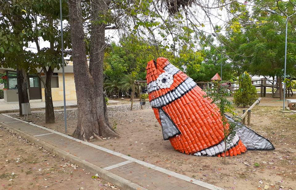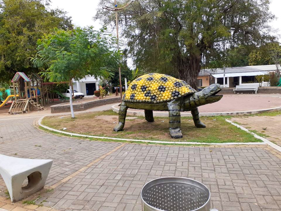 La administración del alcalde saliente Baldomero Villadiego apoyó a los creadores de la iniciativa en la cual se utilizaron materiales como plástico, caucho de neumáticos, tapas de botellas, latas y metal, qué manos idóneas transformaron en hermosas figuras.