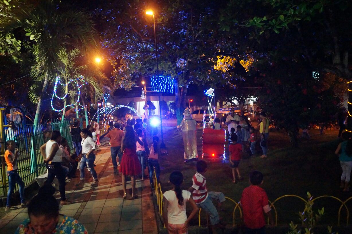 Figuras alusivas a la Navidad, Papa Noel y luces de mil colores hacen parte de la decoración que este año la Alcaldía Municipal instaló en el Parque Central, espacio que fue adornado para que los niños y niñas en compañía de sus padres disfruten de esta época del año.