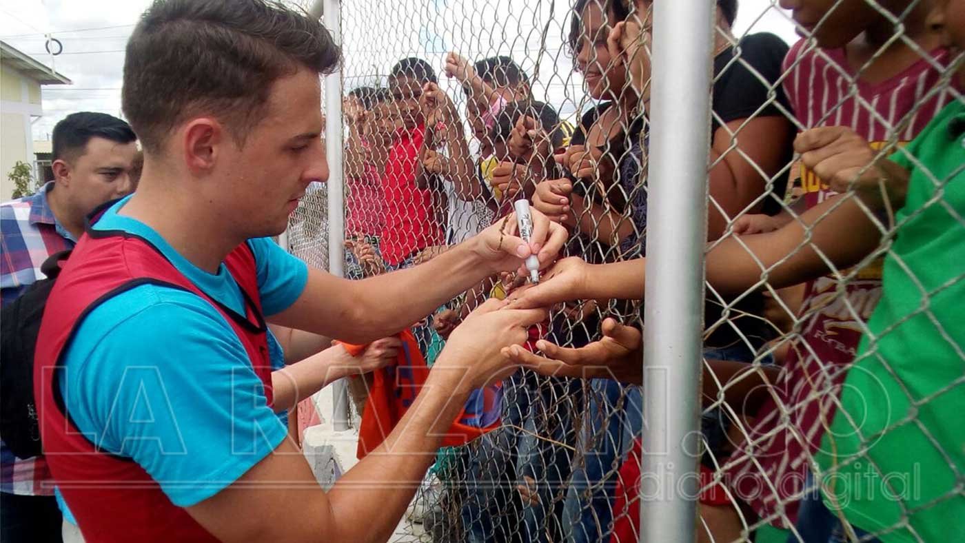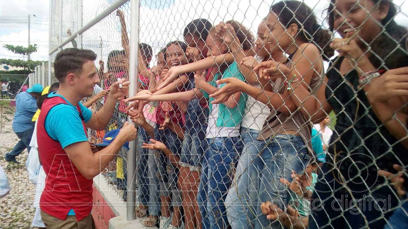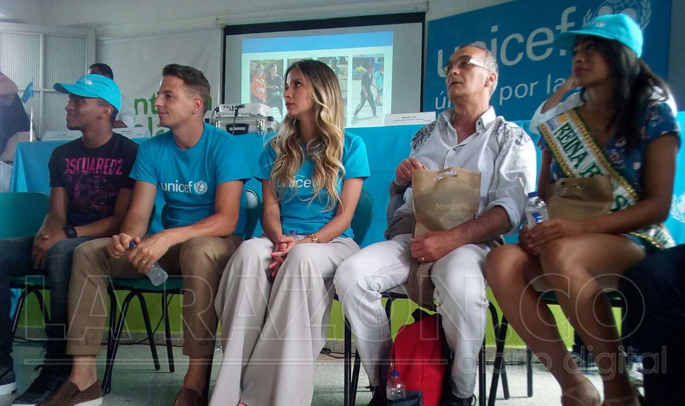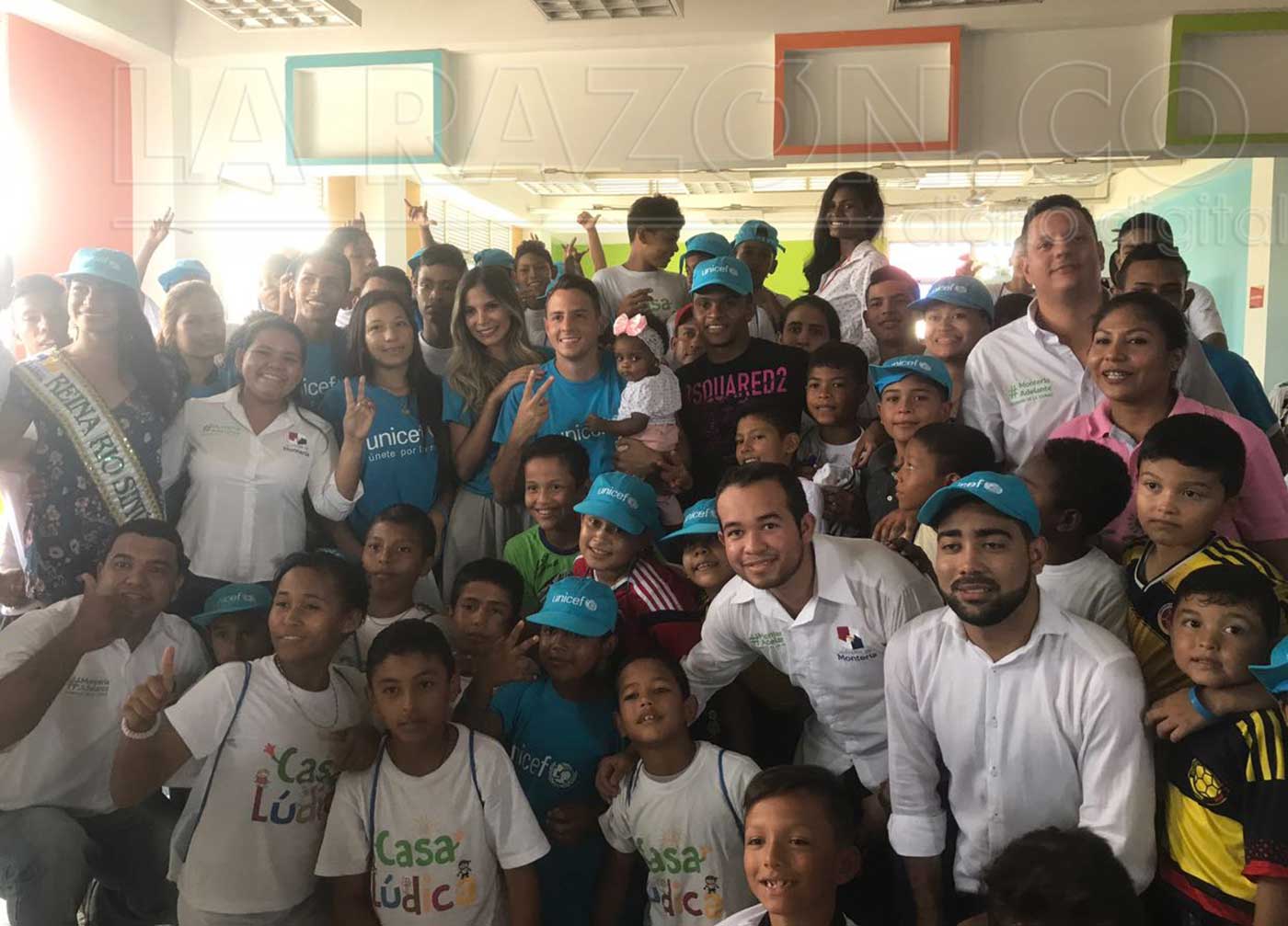 Más de 70 niños y niñas de los sectores vulnerables de Montería (Los Nogales, La Gloria, Los Araujos), compartieron durante la mañana de este viernes, con el jugador de la Selección Colombia, Santiago Arias y su esposa, la modelo y ex reina de la Ganadería, Karin Jiménez, embajadores de buena voluntad de la Unicef, quienes socializaron la estrategia “Golombiao”, que promueve la resolución pacífica de conflictos.