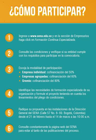 La convocatoria se realiza por medio del Sistema Nacional de Formación para el Trabajo y pretende que las organizaciones participantes logren mejorar y cualificar las competencias de más de 89 mil trabajadores a través de la formación especializada. Anualmente las entidades pueden participar mediante las modalidades de empresa individual, agrupadas o gremios.