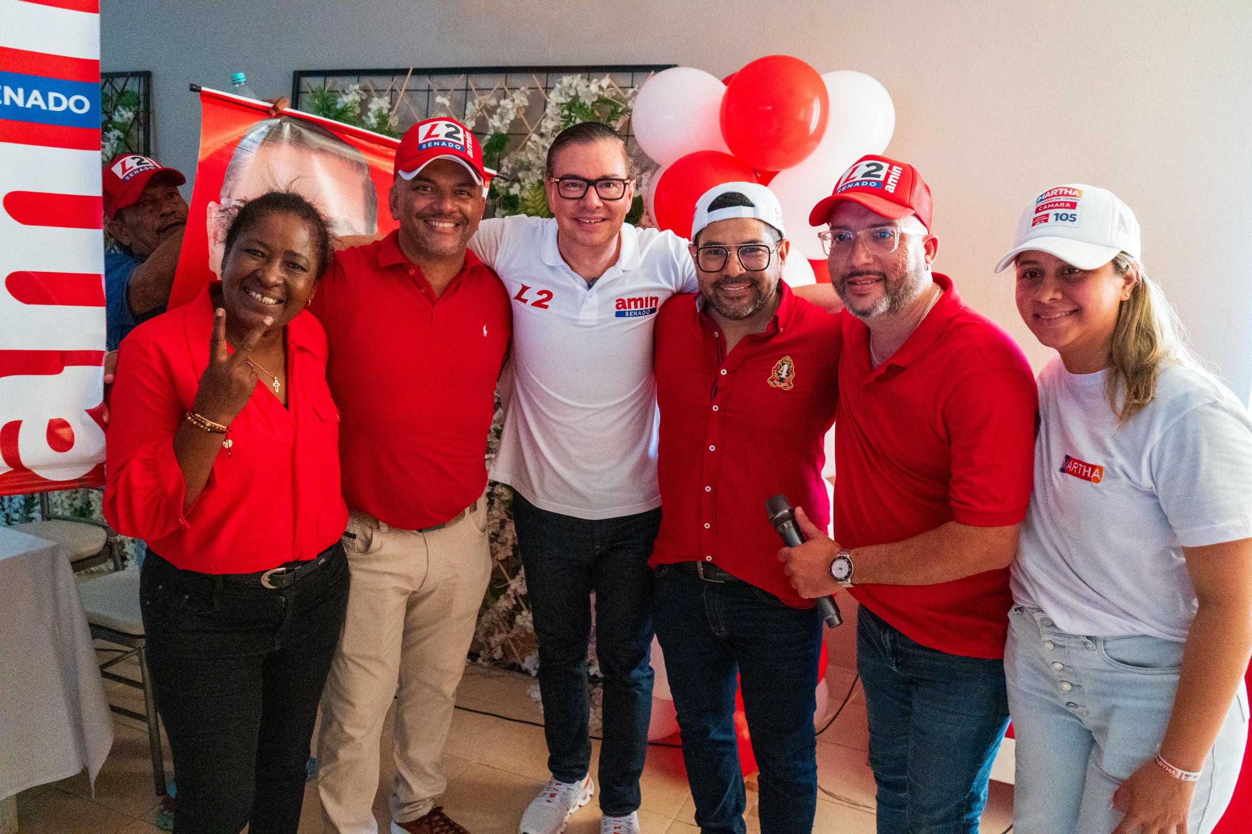 Diego Díaz Pestana, concejal liberal de la localidad, encabezó la bienvenida al legislador junto a los referentes partidarios Jocho Puche y Omaira Romaño. Los tres dirigentes expresaron su adhesión al trabajo legislativo y territorial que desarrolla Amín en el departamento.