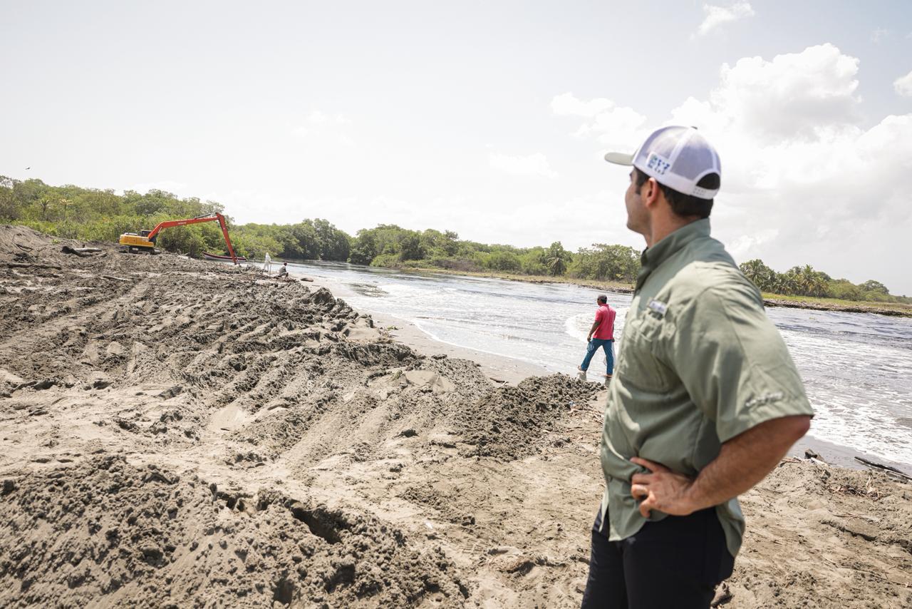 La conexión con el mar ya está establecida gracias al trabajo inicial de pescadores que abrieron el paso a mano, posteriormente reforzado con la maquinaria amarilla enviada por la Gobernación de Córdoba.