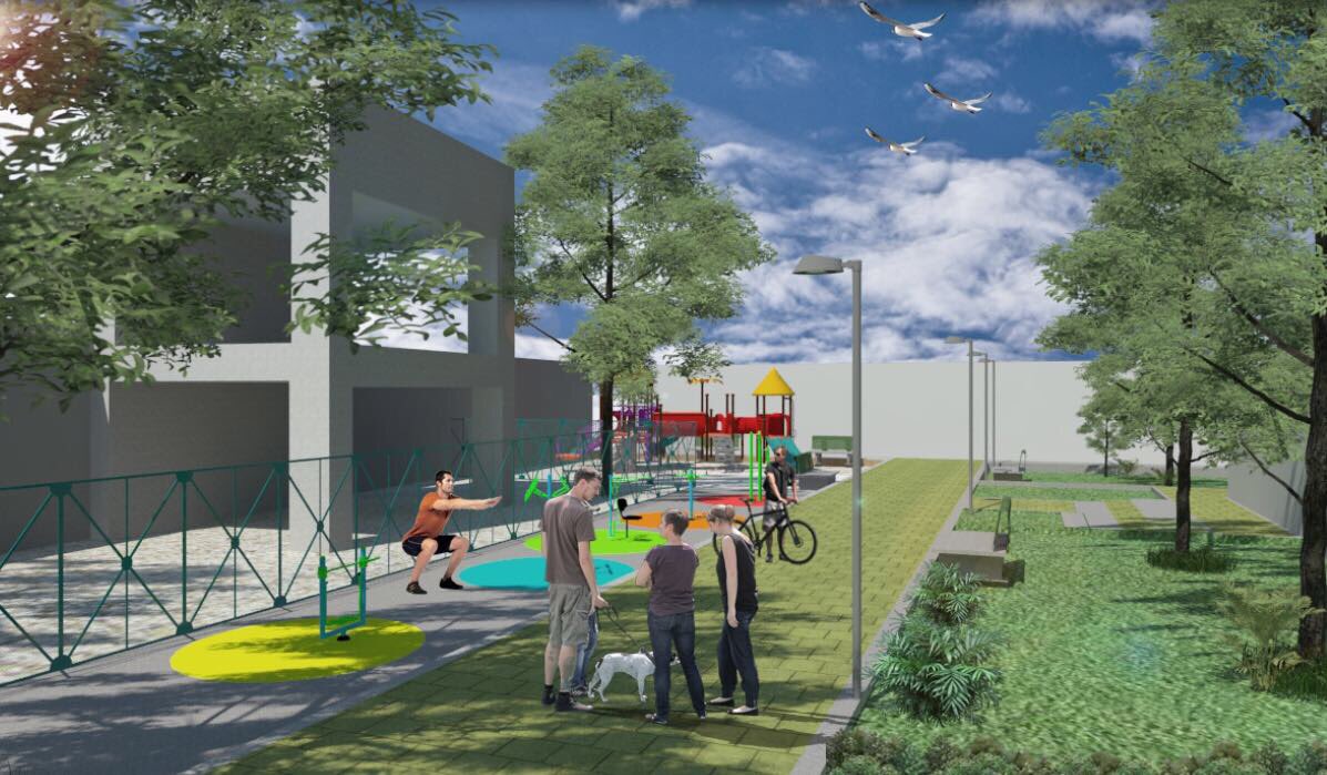 Igualmente se construirá el parque de esta zona, el cual contará con Gimnasio Biosaludable, Juegos Infantiles y Luces Autónomas, que se recargan con la luz solar.