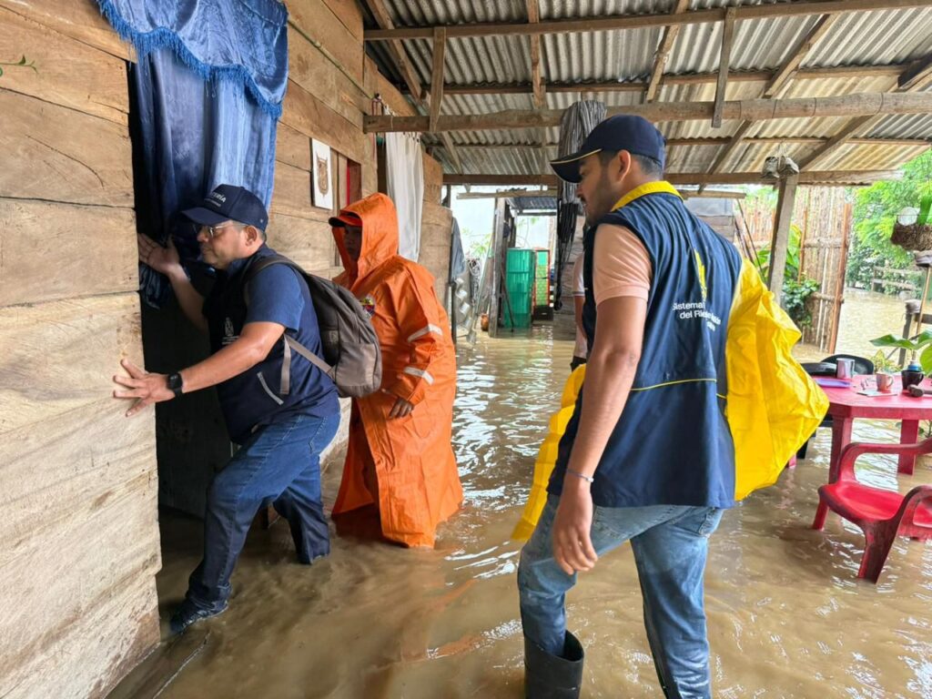 El alcalde Hugo Kerguelén García se desplazó al corregimiento de Leticia para atender de primera mano a las familias afectadas en el sector de Nuevo Reino, donde el equipo municipal verificó el estado de los damnificados para activar las ayudas necesarias.
