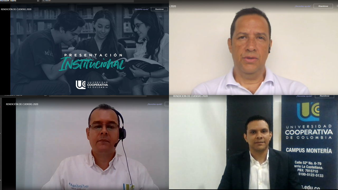 A diferencia de otras ocasiones la rendición de cuenta de esta vigencia fue virtual, liderada por el vicerrector de desarrollo institucional, John Harvey Garavito Londoño y el director del campus de Montería, Jorge Wilson Vélez Osorio.
