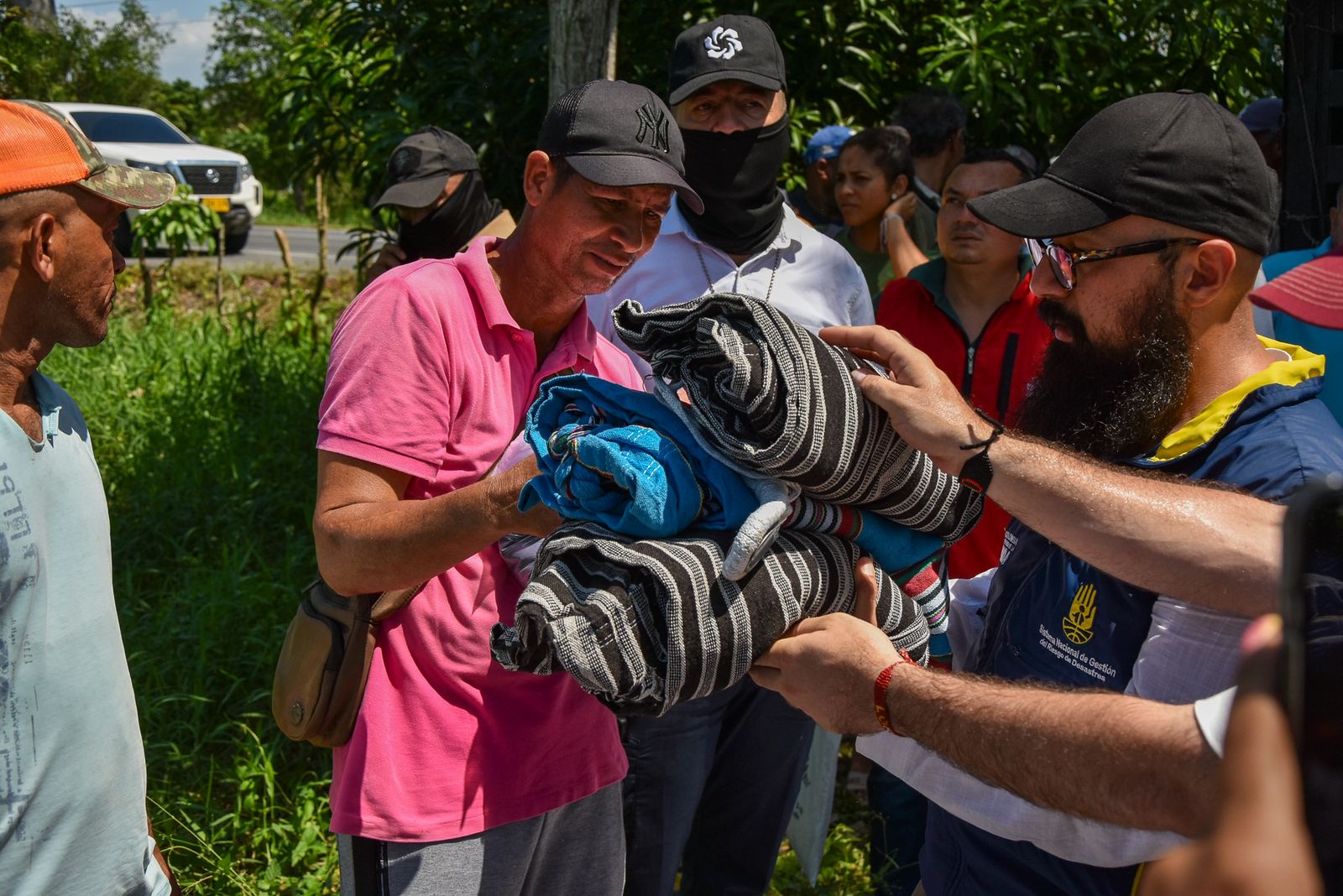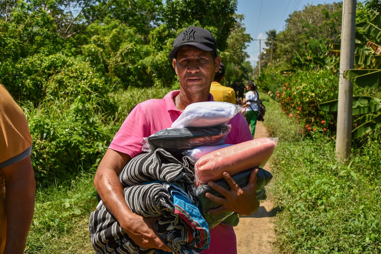 Los kits incluyen alimentos no perecederos, elementos de aseo personal, utensilios de cocina, colchonetas, frazadas, toldillos y otros artículos básicos para las familias afectadas.