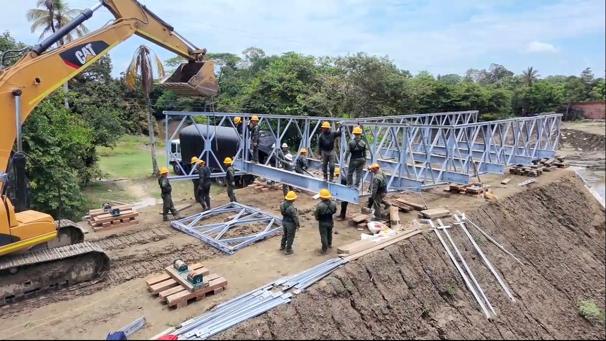 La estructura fue instalada por cerca de 30 ingenieros militares del Ejército Nacional mediante un convenio técnico con la UNGRD. De manera complementaria, la Alcaldía de Guaranda destinó más de 1.545 millones de pesos para obras de soporte, adecuación de vías de acceso y logística necesarias para la entrada en operación del puente.