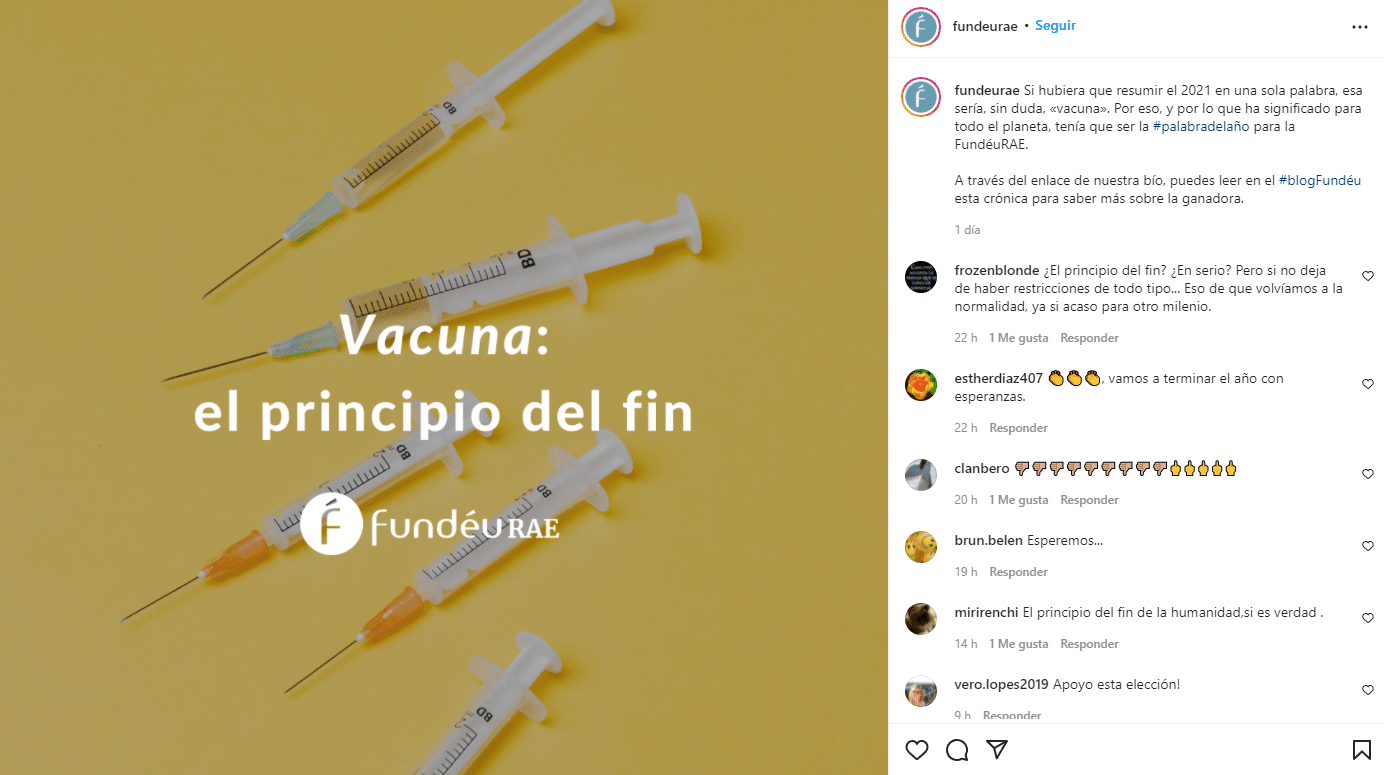#Noticias| La Fundación del Español Urgente, FundéuRAE, escogió la palabra ‘vacuna’ como palabra del año 2021. Además de su gran presencia en el debate social, político, científico y económico, la Fundación la ha seleccionado por su interés lingüístico.