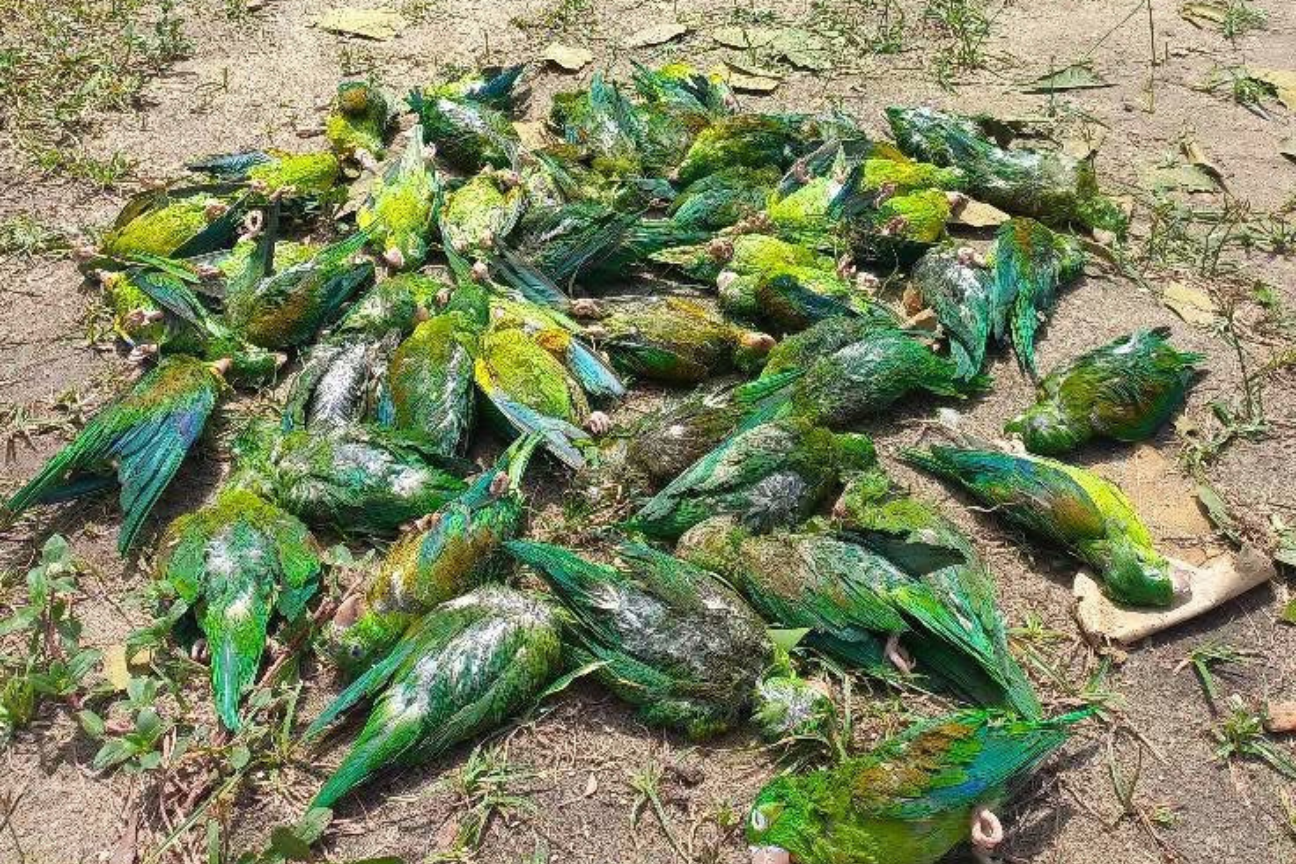 El fuerte vendaval registrado en la madrugada del miércoles 25 de septiembre en Corozal, Sucre, causó la muerte de decenas de cotorras en la zona conocida como “La Esquina Caliente”, convirtiéndose en víctimas silenciosas del fenómeno natural que también afectó viviendas, derribó árboles y dañó escenarios deportivos.