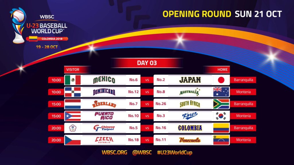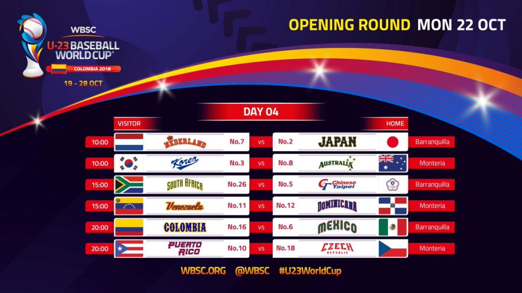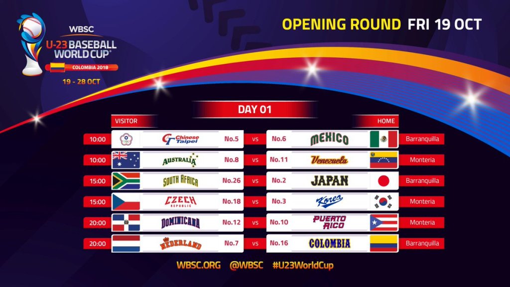 Deportes. Las selecciones de Venezuela y Australia jugarán el próximo 19 de octubre el primer partido del Mundial de Béisbol Sub-23 en el estadio 18 de Junio de Montería, a partir de las 10:00 a.m., así lo dio a conocer este viernes la Confederación Mundial de Béisbol y Sóftbol (WBSC).
