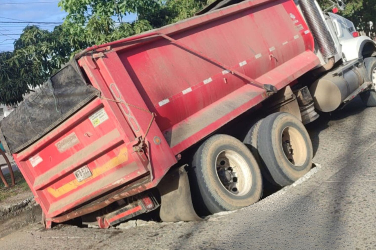 La empresa de servicios Veolia informó que personal técnico se encuentra atendiendo la emergencia presentada en la vía de la calle 41 con carrera 6, donde un hundimiento dejó atrapada una volqueta.