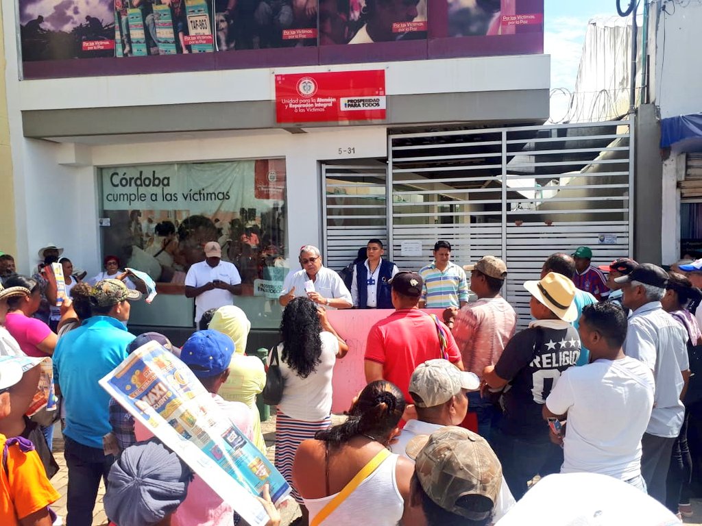 Montería. Un grupo de víctimas del conflicto armado en el departamento de Córdoba, protagonizaron en la mañana de este miércoles 12 de septiembre un plantón en las afueras de la Unidad para la Atención y Reparación Integral, ubicadas en la calle 25 con carrera quinta y sexta del centro de Montería.