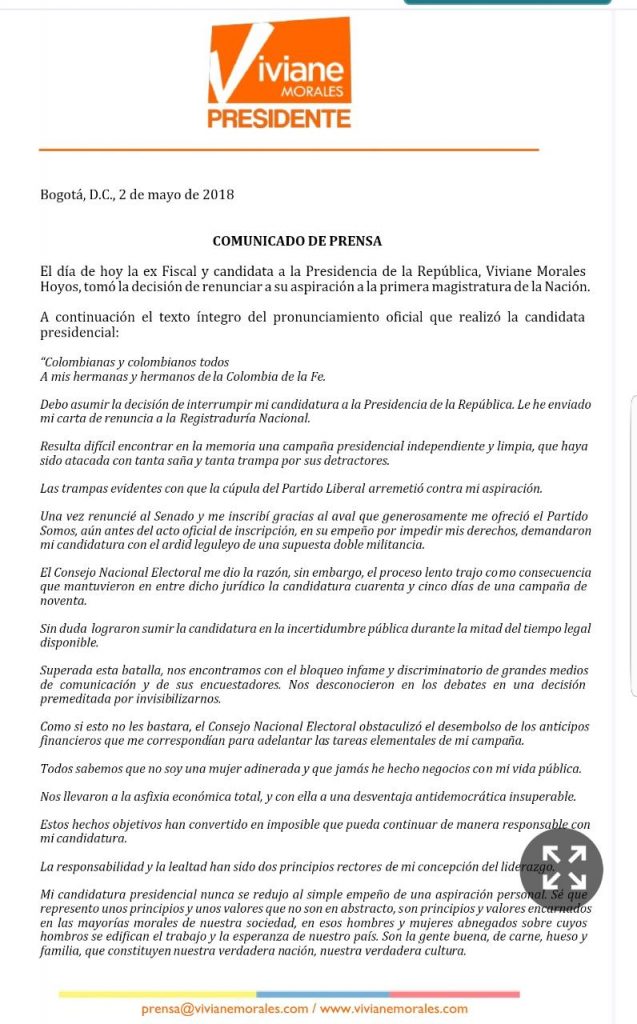 — Viviane Morales (@MoralesViviane) 2 de mayo de 2018