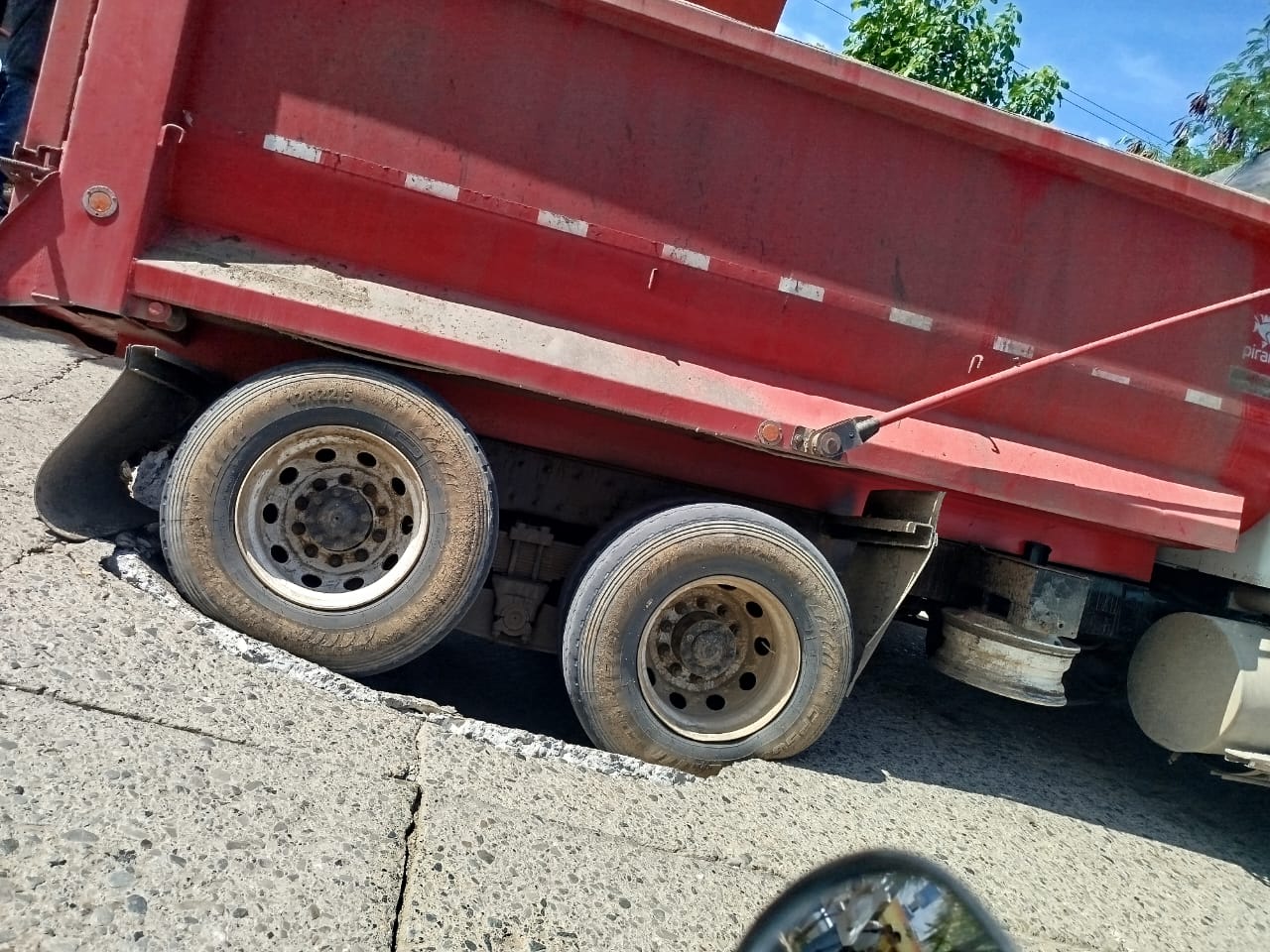 Una volqueta quedó atrapada en un hundimiento en la calle 41 con carrera 6 de Montería, en un sector que habitantes de la zona ya reportaban como crítico.