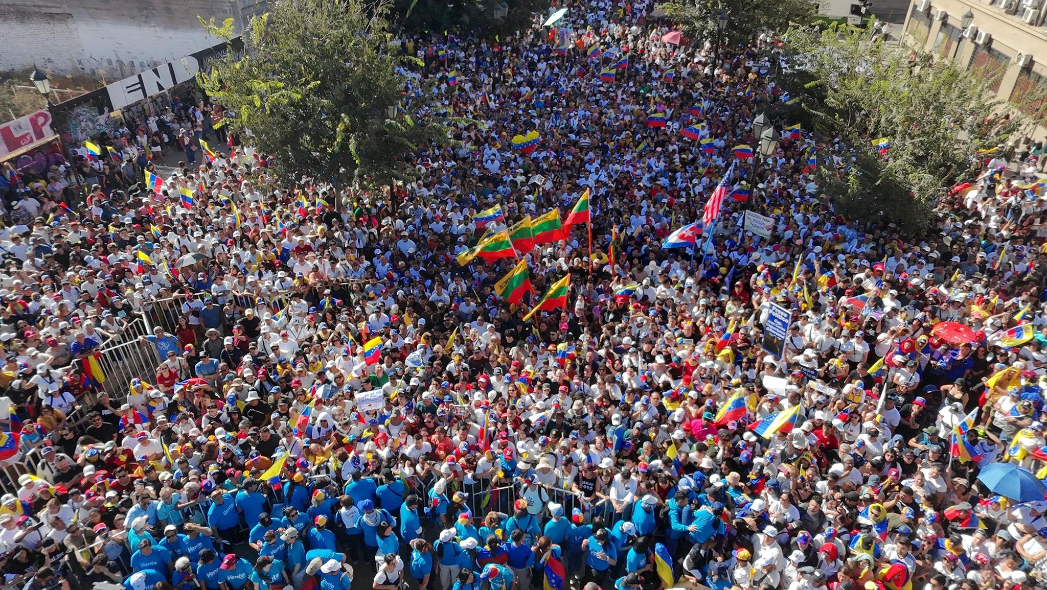 La convocatoria, que desbordó todas las previsiones, reunió a venezolanos de distintas condiciones: profesionales, trabajadores informales, migrantes regulares e irregulares, todos unidos por una misma bandera. Machado subió al estrado con su característica camisa blanca, cargó en brazos a varios niños y pronunció un discurso cargado de simbolismo en el que llamó a sus compatriotas a prepararse para el retorno. “Ya no somos los mismos”, afirmó ante la multitud que la ovacionó al grito de “libertad”.