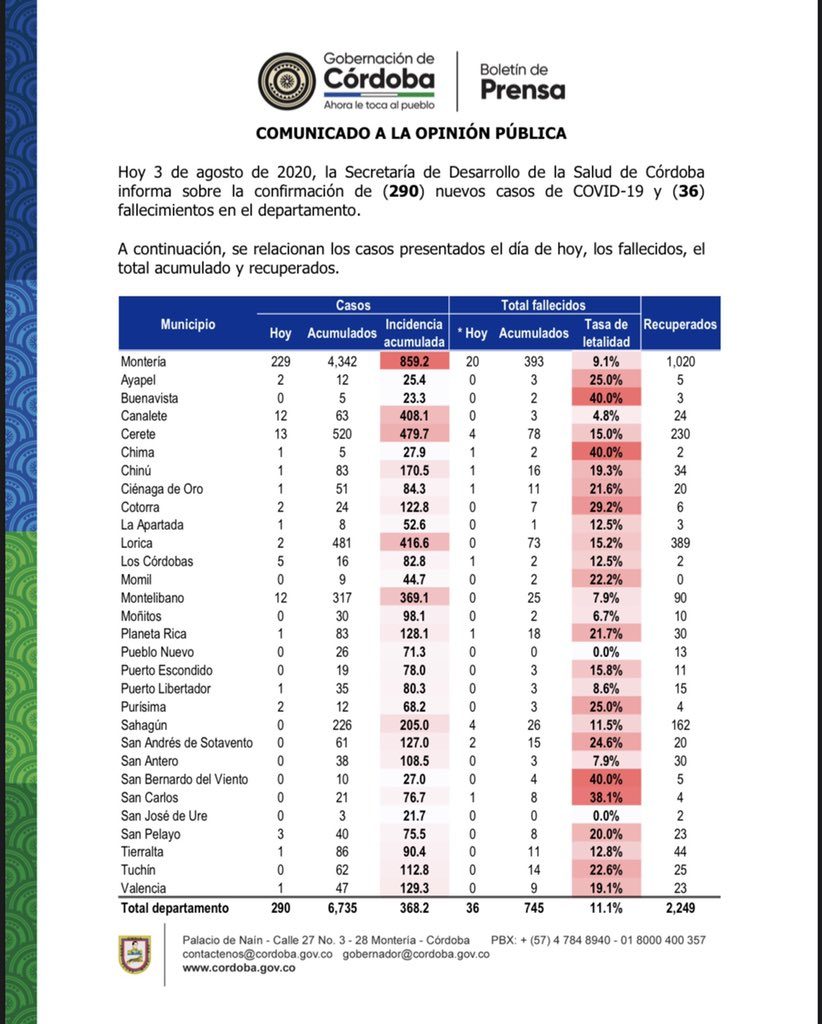 A continuación, el consolidado en todo el departamento: